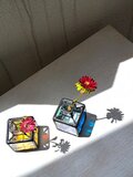 ちいさなエントツをデザインした、ステンドグラスのフラワーベースです