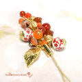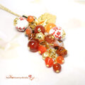 白地に花柄プリントが描かれたセラミックビーズが大人可愛い雰囲気。 艶やかなオレンジの天然石カーネリアンや、マーブル模様のビーズが重なり合い、温もりある華やかさをプラス。