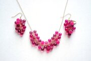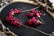 レジンで二種類の赤色の球体を作り、ふさふさと連ねたネックレス。