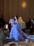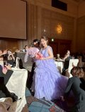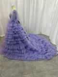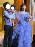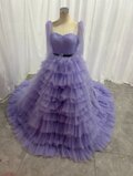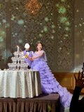 実例写真!華やか カラードレス パープル 柔らかく重ねたチュールスカート キャミソール 披露宴