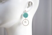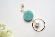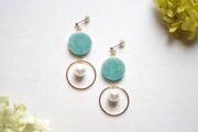 ラウンドモチーフのレジンにコットンパールとリングをあしらったピアス。