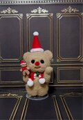 可愛い羊毛フェルトのサンタクマ、手に小さな人形を持っています。