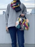 カラーミックスのとっても可愛いエコファーで作ったラウンドバッグです♪