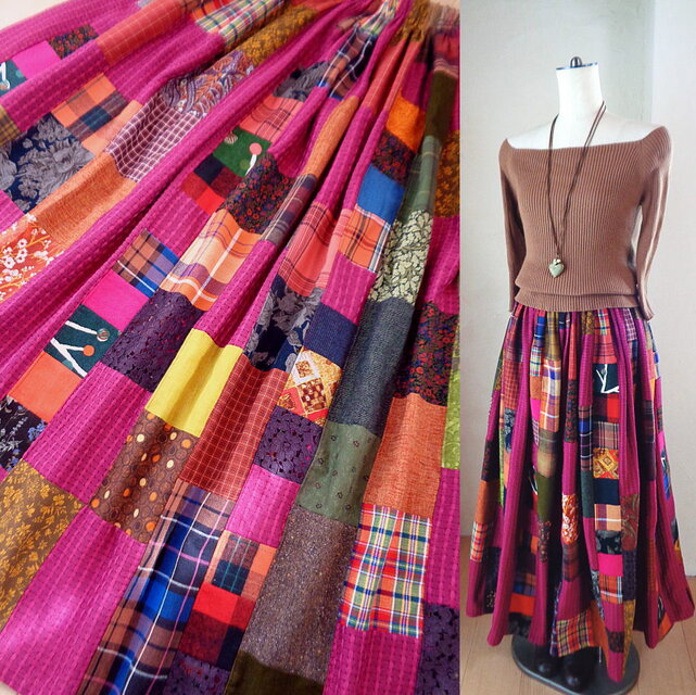 宝物のような絵画なパッチワークスカートです。