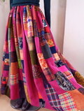 パッチワークスカート 大人可愛い ギャザースカート ロングスカート
