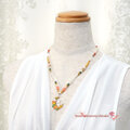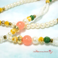 艶やかな天然石ピンクオレンジジェードに、イエロー、グリーン、オレンジ、クリームが調和するカラフルながら落ち着いた色合い。