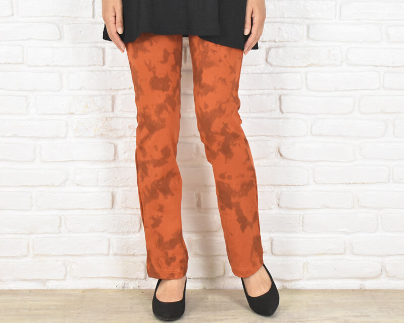 驚きの穿き心地!手染めストレートストレッチロングパンツ オレンジ&ブラウン 大きいサイズあり