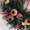 クリスマス定番の木の実では無く、ちょっとオシャレなユーカリトランペットを入れてみました。