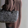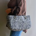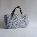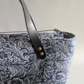 深い青に咲く花模様|スペイン製ジャガードのクラシカルトートバッグ