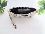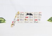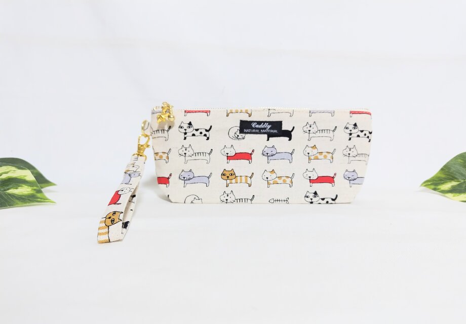生成り地にカラフルで可愛い行列ネコちゃん柄、綿オックス地のちょっと大きめサイズの持ち手付きペンケースです。