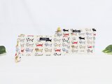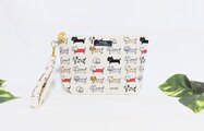 生成り地にカラフルで可愛い行列ネコちゃん柄、綿リネン地の持ち手付きポーチです。