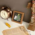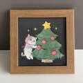 クリスマスツリーに手を伸ばす三毛猫のほっこり和紙アートパネル