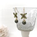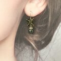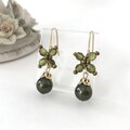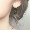 フラワーモチーフ の アンティーク調 ピアス グリーン 緑 オリーブ チェコガラス ビーズ クラシカル