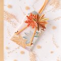 一枚一枚丁寧に仕上げた葉を重ね、紅葉が重なるように配置し、黄色や橙色の紐をあわせて豊かさを表現しました