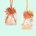 素敵なお守り袋が2つ届きました。 絞りの生地の色合いと大輪の花がとても華やかでキュートです。 白梅のものは、奥ゆかしさと気品を感じました。 どちらも大変気に入りました。大切に使わせていただきます♪