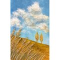 秋空の小麦畑の丘は、秋のすっきりとした青空にそよぐ小麦を手漉き和紙で表現した一点もののちぎり絵です。