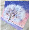 ふわふわの木(パープルピンク)は、パープルとピンクのグラデーションにふわふわな木を手漉き和紙で表現した一点もののちぎり絵です。