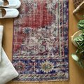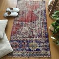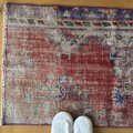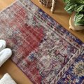 59×112 アンティークレッド×ブルー 擦れシャビー トルコヴィンテージラグ