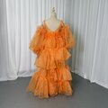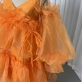 カラードレス オレンジ キャミソール Vネック 取り外し袖 アシンメトリードレス ロング 可愛い 花嫁 前撮り