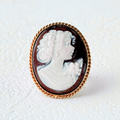繊細な女性像を浮かべたカメオを、K18が優雅に囲うリング。