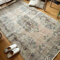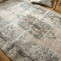 127×208 ミルクティー ボタニカルメダリオン トルコヴィンテージラグ