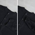 袖口にはボタンを2つ付け、留める位置によって袖の長さや幅を調整できる仕様にしました。