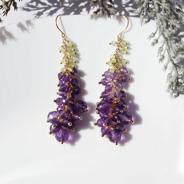 紫の天然石によるデルフィニウムのピアス ~Delfina