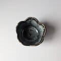 深みのある藍色が美しく調和した、花形の小鉢です。