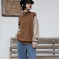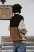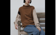 上品で雰囲気を醸し出す配色セーター 前後2wayセーター ウールセーター ハイネック ニット 251006-1