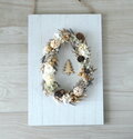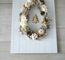 ホワイトのフレームにホワイト、ゴールド系でまとめた上品なリースです。