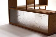 小さな棚の上に大きな棚を置く場合はH型の脚で支えます。