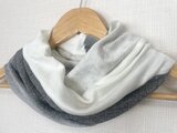 柔らかいアイボリーのルーズスヌード、軽量で通気性が良い。