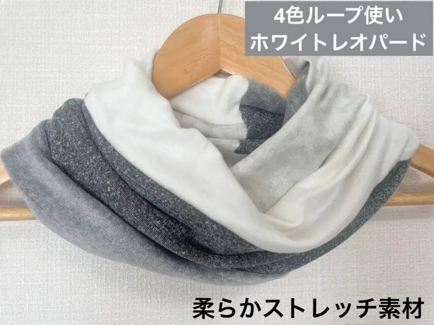 ホワイトグレーシルバーレオパードハンドメイドネックウォーマー寒さ対策にも