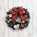 落ち着いた雰囲気の中に、クリスマスらしい華やかさを持ったリースです。