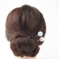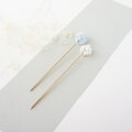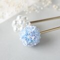 玉かんざし二本セット 「 空色の花 」 水色 パステルカラー 入学式 訪問着 つまみ細工 一本軸簪 ヘアスティック 和装