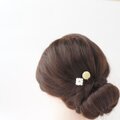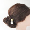 予め、髪をお団子やシニヨンにまとめ、スッと挿し込みます。