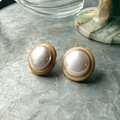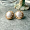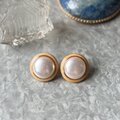 シルキーなフェイクパールを、ベージュのエナメルペイント、ゴールドラインで縁取りされたゴールドトーンピアス。