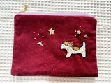 手刺繍のファスナーポーチ(犬)