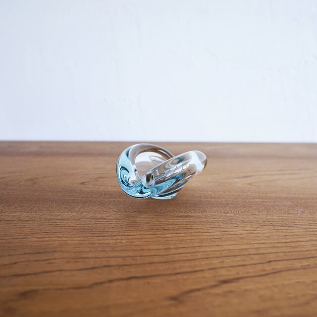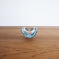 1950〜60年代にかけて制作されたデンマークHolmegaard(ホルムガード)社製のアシュトレイです。同社のデザイナーPer Lutken(ペア・ルトケン)が手がけた澄んだブルーガラスが魅力的な逸品です。こちらは小ぶりでかわいいSサイズです。