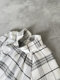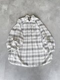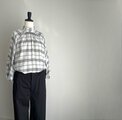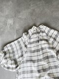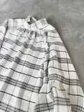 七分丈のラグラン袖と控えめなハイネックギャザー襟が特徴的なデザイン。後ろボタン開きで肩のラインが体にフィットし、エレガントな印象を与えます。ボトムス次第でカジュアルにも対応可能な緩やかなシルエットが魅力の上品なチェック柄ブラウスです。ポリエステルとレーヨン混紡素材で程よい落ち感があり、ふんわりとした美しいシルエットを実現。首元のギャザーと丸みのある袖がさりげない個性を引き立てます。