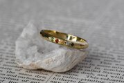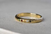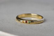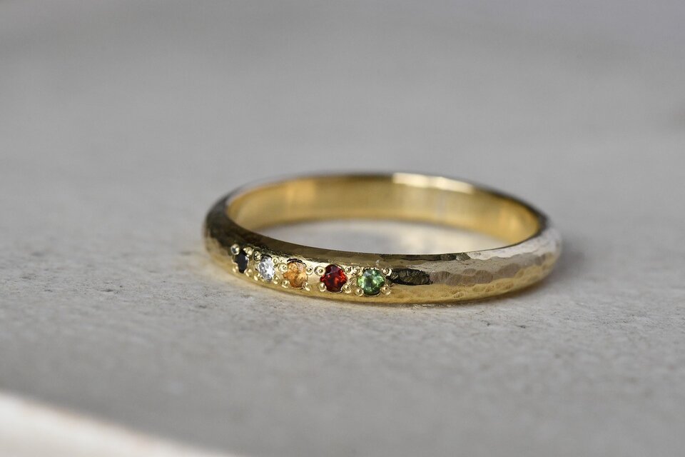 真鍮で制作を行った甲丸リングの表面に5種類の天然石を留めて制作を行ったリングになります。