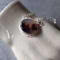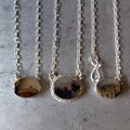 デンドリティックアゲートをラフな飾り枠を施しシルバーネックレスに仕立てました。