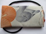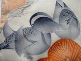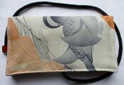 正絹のおしどり(鴛鴦)の描かれた羽織の裏地で作りました。