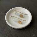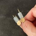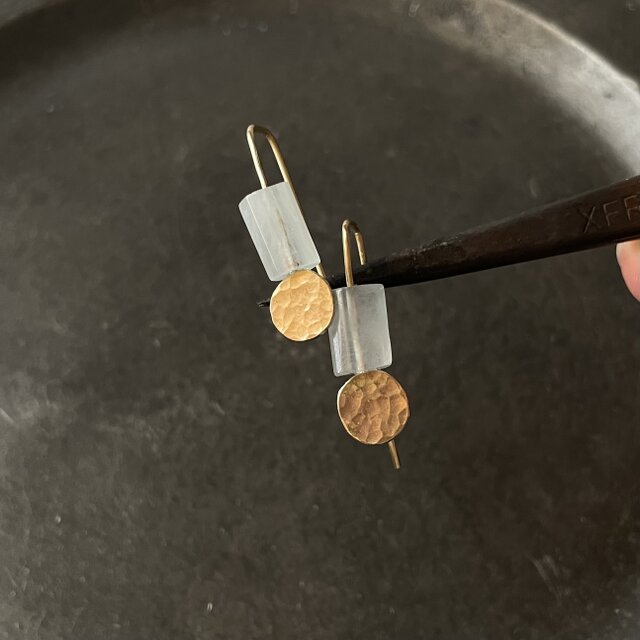 アクアマリンと槌目をつけた真鍮丸板を合わせたシンプルなピアスです。