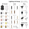 灯具セットの標準は、ソケット、コード、プラグ、カバー共に黒か白になり、コードはツイストコードの40cmとなります。