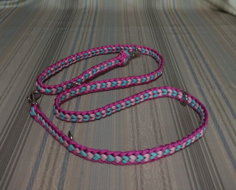 ピンクのハーフチョーク&カフェリードに続いてお願いしたこのブルーの首輪&リードもとってもステキな仕上がりで凄く気に入りました しっかりとそして丁寧に編んであり、大型犬のうちの子でも安心して使えそうです これからの季節はお散歩するのに最高な時期になりますので早速使いたいと思っています 終始丁寧な対応をしていただき、ありがとうございました 大切に使わせていただきます