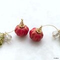 ぽってりしたフォルムのかぼちゃは渋めの赤。ゴールドを効かせて装飾しました。