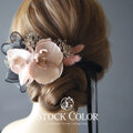 胡蝶蘭 スエードリボン かすみ草 ヘッドドレス ヘアアクセサリー 髪飾り*ウェディング 成人式 白無垢 和装 袴 卒業式