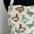 北欧コトリ柄のかわいい生地で肩掛けタイプのエプロンをつくりました。
