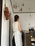 シンプルな形のエプロンです。普段の家事仕事にガーデニングに。新しい習い事で。いろいろな場所で使っていただけたらと思います。